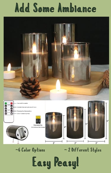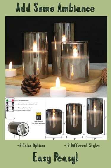 These gray glass flameless candles from GenSwin bring warm, flickering ambiance to your home—without real fire. Made with real wax and a realistic wick design, they’re perfect for living rooms, bedrooms, and cozy corners. This flameless candle set includes a 10-key remote that lets you turn candles on and off, adjust brightness, change flicker modes, and set 2, 4, 6, or 8-hour timers. Cozy lighting made effortless for everyday living. Enjoy the look of real candles without the worry. These battery-operated flameless candles offer a safe alternative to open flames, making them ideal for families with kids or pets while still creating a warm, relaxing atmosphere.