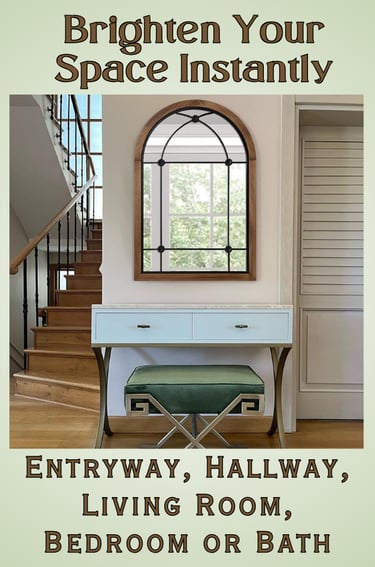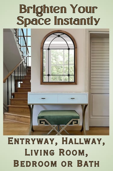 The arched wall mirror from blue page features a rustic wood frame with window-pane detailing for classic farmhouse charm. Its tall arched design adds visual interest and makes any room feel more open and styled. This farmhouse mirror adds vertical space and elegance to entryways, hallways, living rooms and more. It’s an easy way to make smaller or darker spaces feel brighter and more open. Whether your space leans farmhouse, rustic, or classic, it adds architectural interest and timeless charm.